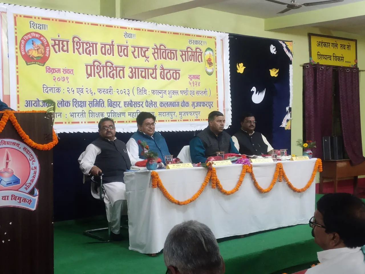 Muzaffarpur 25 February : आज दिनांक 25 और 26 फरवरी 2023 को भारती शिक्षक प्रशिक्षण महाविद्यालय सादातपुर के वंदना कक्ष में संघ शिक्षा वर्ग एवं राष्ट्र सेविका समिति प्रशिक्षित आचार्य बैठक की शुरुआत पूजा और वंदना के साथ हुआ । इस कार्यक्रम में सभी आगंतुकों का स्वागत और परिचय महाविद्यालय के प्रभारी प्राचार्य श्री राजेश कुमार वर्मा ने करवाया ।