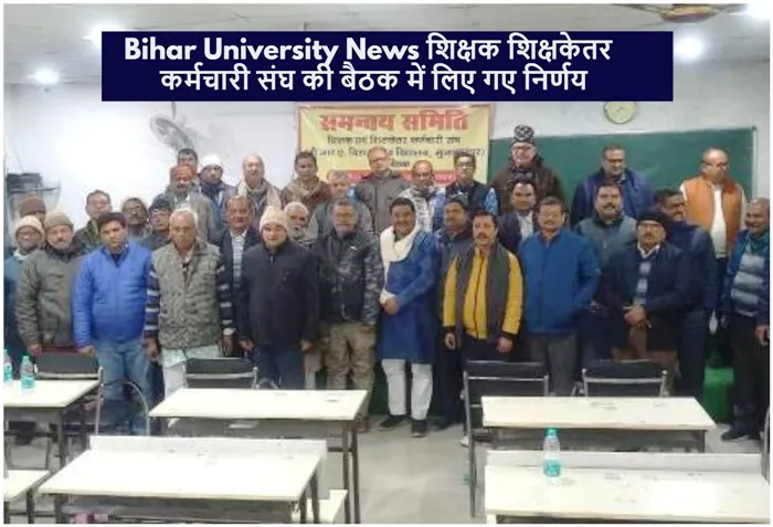 Muzaffarpur 3 January : Bihar University News में आज स्थानीय महेश प्रसाद सिंह साइंस महाविद्यालय मुजफ्फरपुर में शिक्षक संगठन (बूटा एवं बूस्टा), शिक्षक कर्मचारी संघ, बिहार राज्य विश्वविद्यालय एवं महाविद्यालय कर्मचारी महासंघ तथा बिहार राज्य विश्वविद्यालय कर्मचारी संघ, स्नातक अनुदानित शिक्षक शिक्षकेतर कर्मचारी संघ, बिहार इंटरमीडिएट शिक्षक शिक्षकेतर कर्मचारी संघ एवं पेंशनर्स समन्वय समिति की संयुक्त बैठक हुई.