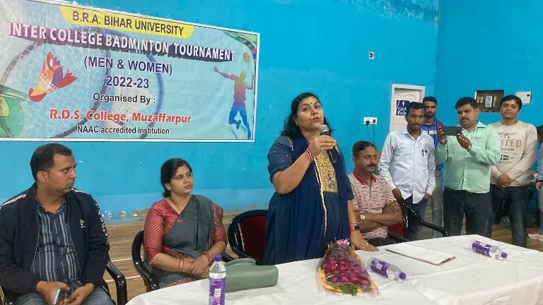Muzaffarpur 19 November : आरडीएस कॉलेज के मेजवानी में आयोजित अंतर महाविद्यालय बैडमिंटन टूर्नामेंट का विधिवत उद्घाटन आरडीएस कॉलेज के प्राचार्या डॉ अमिता शर्मा के द्वारा खिलाड़ियों से परिचय प्राप्त कर किया गया।